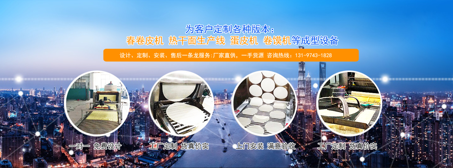 公司地處湖北省鄂州市武昌大道西段,地理位置優(yōu)越,交通方便,緊鄰武九鐵路、316國道。提供春卷機(jī)械、淀粉機(jī)械、豆絲機(jī)械(炕熟)、餅絲機(jī)、烤鴨餅機(jī)、新型仿手工圓形剪餅機(jī)、米粉、魔芋、葛根、豆類粉絲、春卷皮等現(xiàn)代化生產(chǎn)線和快餐豆絲(米粉、魔芋、葛根、薯類粉絲),從工藝到裝備成套設(shè)計、配套設(shè)計、開發(fā)制造、安裝調(diào)試及加工技術(shù)一系列服務(wù),憑借多年的生產(chǎn)經(jīng)驗和一支符合現(xiàn)代要求的員工隊伍,使我們的系列淀粉機(jī)械、豆絲機(jī)械、米粉粉絲機(jī)械覆蓋全國20多個省市。
